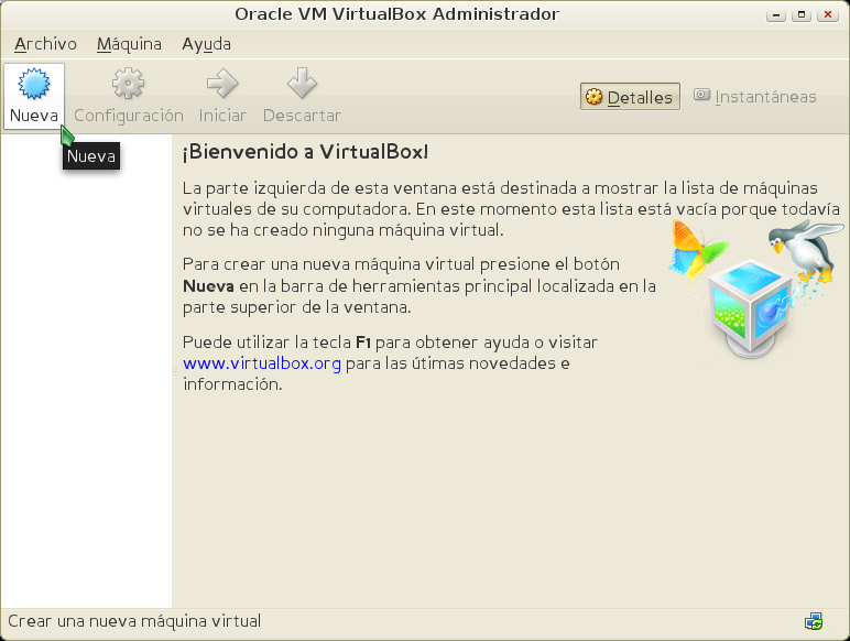 - Ejecute su aplicación Virtualbox.