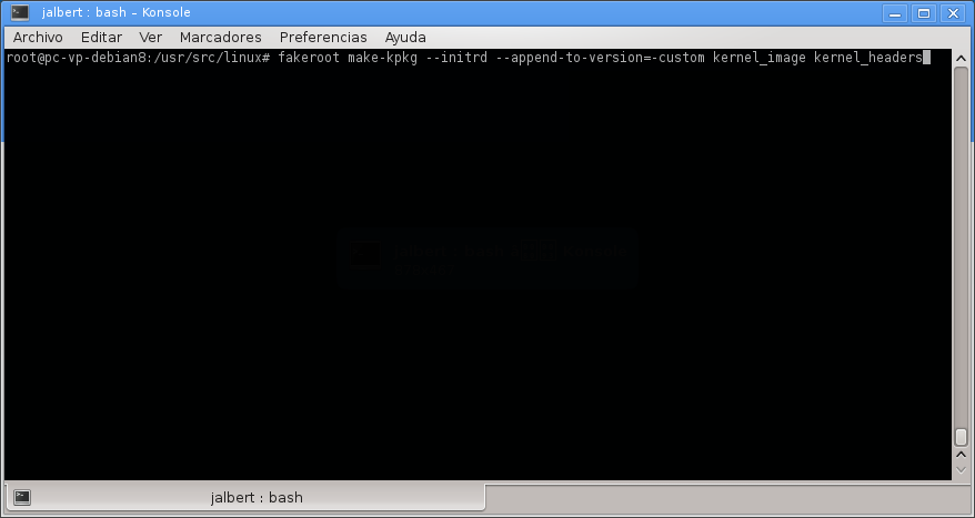 Iniciar generación de paquetes .deb: fakeroot make-kpkg –initrd –append-to-version=-custom kernel_image kernel_headers