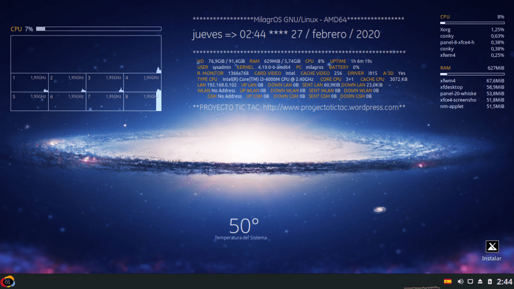 Esta primera publicación del año 2020 sobre MilagrOS GNU/Linux es para informar que ya se encuentra ya está cargada en la carpeta ftp de la web del Proyecto Tic Tac, la RC1 de MilagrOS GNU/Linux 2.0 (Omega Devorantem) con el nombre de archivo: MilagrOS-20200226-Version-2.0-HOMT-RC1.iso.