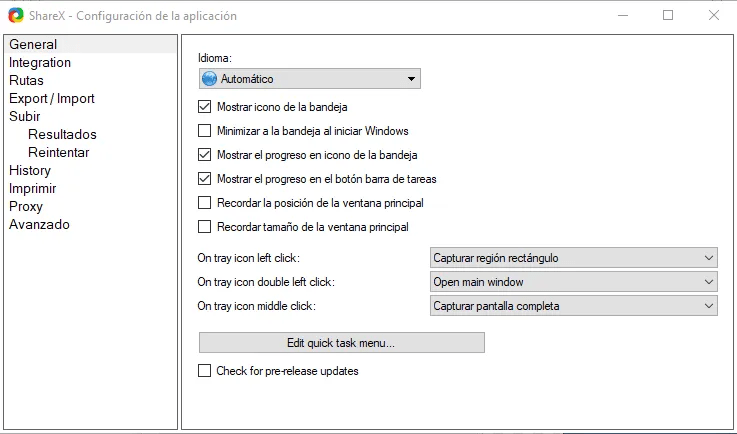 ShareX es impresionablemente personalizable y cómodo con respecto a las opciones de atajos de teclado, destinos de carga, configuraciones de aplicaciones e además cambiar la velocidad de fotogramas de grabación de video.
