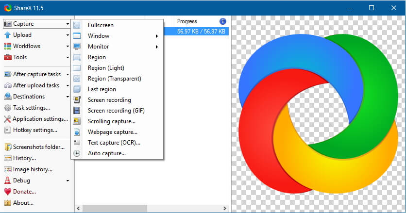 Los usuarios pueden además capturar pantallazos de aplicaciones/ventanas en variedades de formas sin accesos rápidos. Pueden utilizar el editor de imágenes Greenshot para realizar capturas añadiendo anotaciones y ofuscar, copiar o cortar partes de la imagen. Pero ShareX puede subir tus imágenes automáticamente a tu hosting de imágenes favorito o a tu Google Drive. Todo tiende a ser configurable y esta también es una de las mejores partes de ShareX.