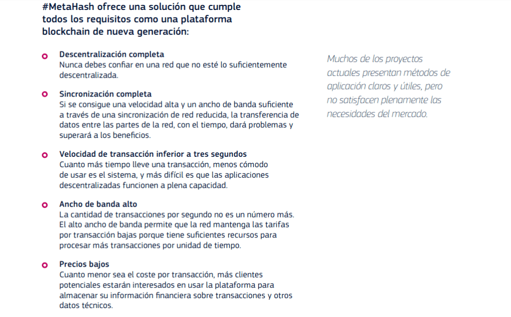 Para conocer más a profundidad sobre MetaHash y MetaHashCoin podemos acceder al Libro Blanco del proyecto, en español. Sin embargo, se puede resaltar de todo este nuevo ecosistema digital en construcción lo siguiente:
