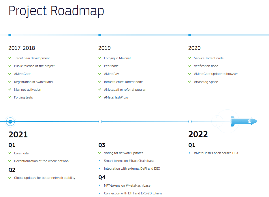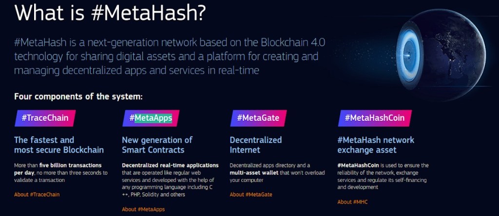 Pero, aparte de MetaHashCoin (MHC), la red MetaHash también cuenta con otros elementos o tecnologías significativas y relevantes, tales como, TraceChain, que permite que la Blockchain (4.0) soporte más de 100.000 (cien mil) transacciones por segundo en cada nodo.