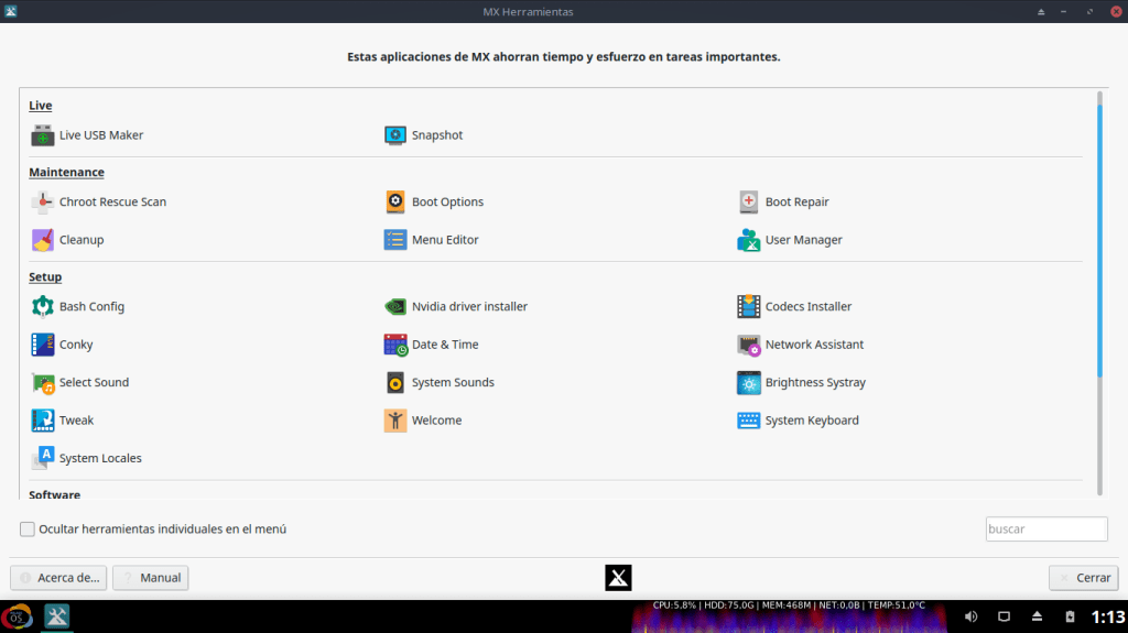 - Todas las Apps existentes en la versión 2.1 actualizadas a la fecha de liberación, e inclusión de nuevo paquete mxfb-googies para el WM FluxBox.