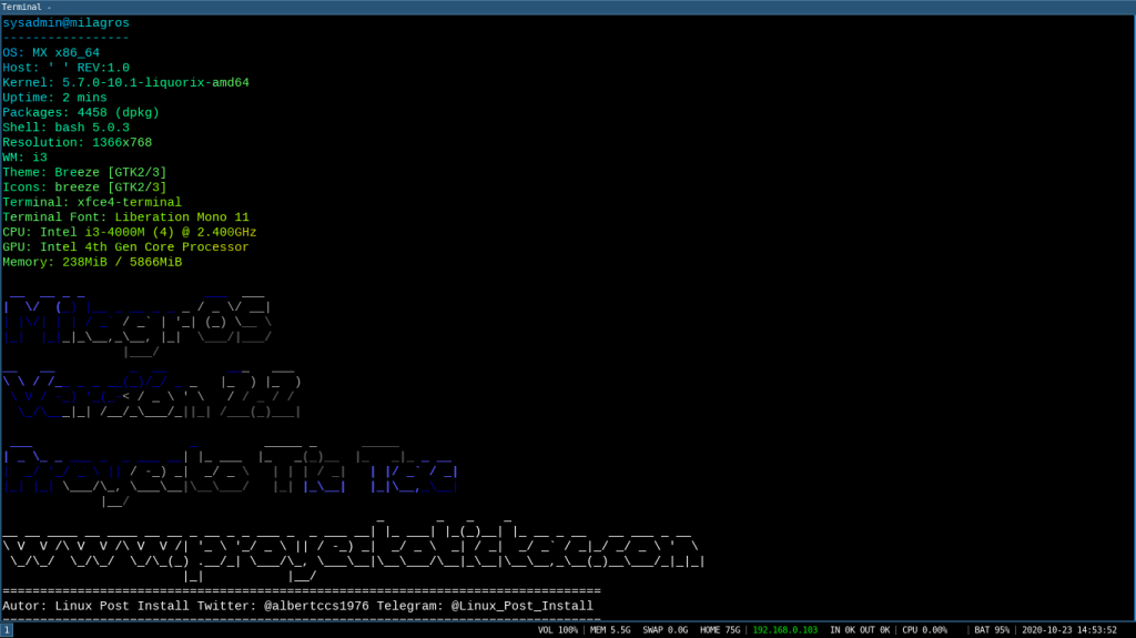 Esta publicación es para mantener informar a todos, tanto aquellos que por primera vez leen sobre MilagrOS GNU/Linux, como aquellos que son asiduos seguidores del Blog o miembros de las Redes Sociales o del Canal/Grupo de Telegram del Blog, y ya les es bien conocido nuestro Respin (Edición personal) de MX Linux llamado MilagrOS GNU/Linux. Desarrollo que sustituyo al anterior llamado MinerOS basado en Ubuntu 18.04, usando Systemback, el cual estaba especialmente dedicado a la Minería Digital de Criptomonedas.