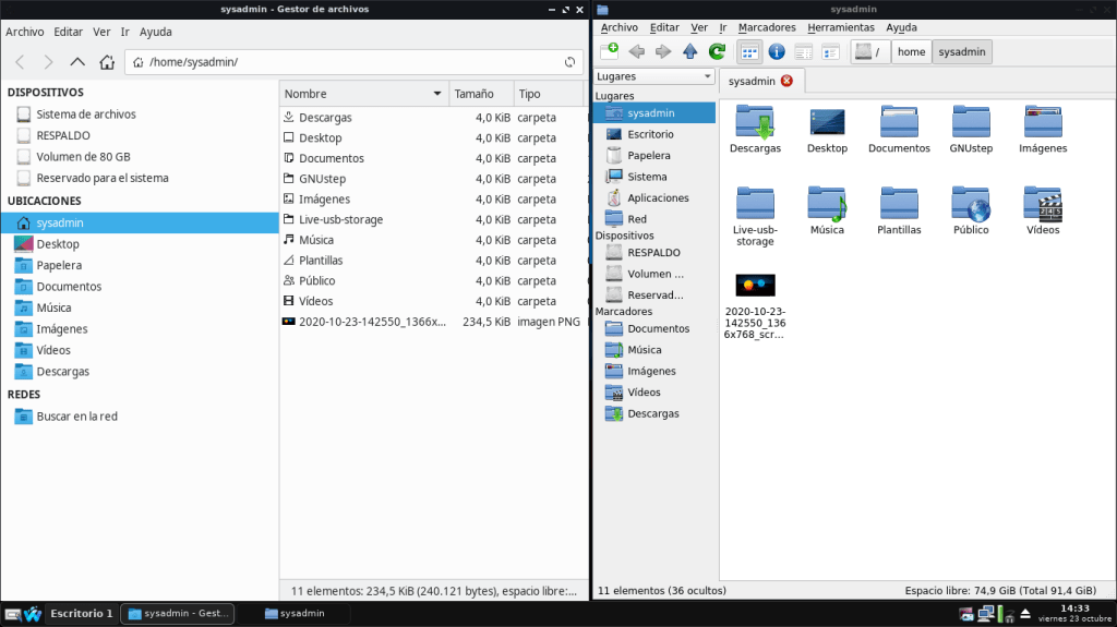 - Agregado el esqueleto del usuario Sysadmin al del Sistema Operativo ( en la ruta /etc/skel), de manera tal que, los nuevos usuarios al crearse tengan la misma configuración original del usuario Sysadmin, en todos los WMs y DEs disponibles.