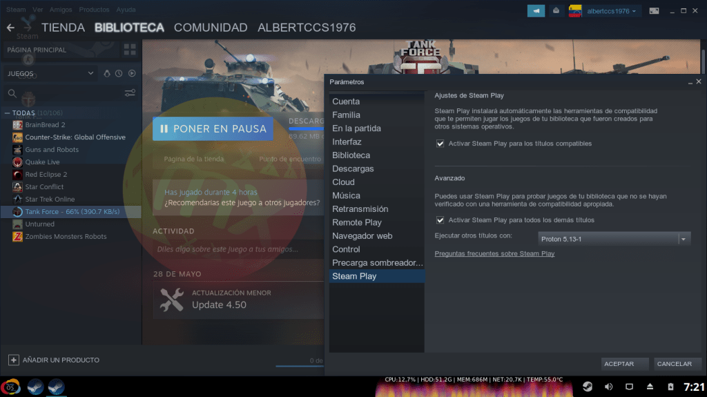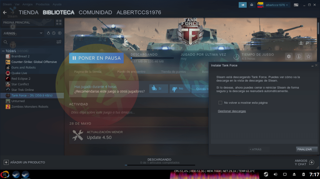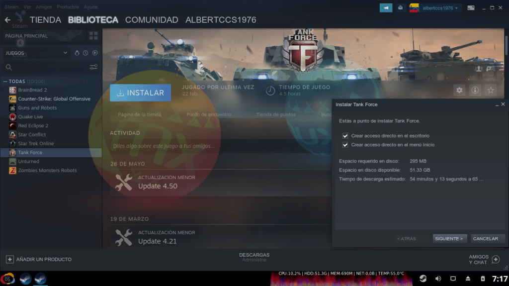 Post instalación de Steam