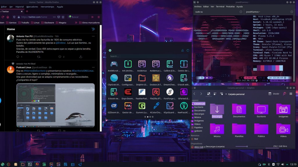 Hoy, 27/02/2021, te invitamos a disfrutar de algunas de las más hermosas y espectaculares capturas de #FondosDePantalla ( #Wallpapers ) de #Escritorios de Sistemas Operativos #GNU #Linux, provenientes principalmente de los Grupos de #Telegram llamados #ViernesDeEscritorio, #ProyectoTicTac y muchos otros usuarios y grupos de #Twitter y #Facebook, recopilados de la celebración del «Viernes de Escritorio» del 26/02.