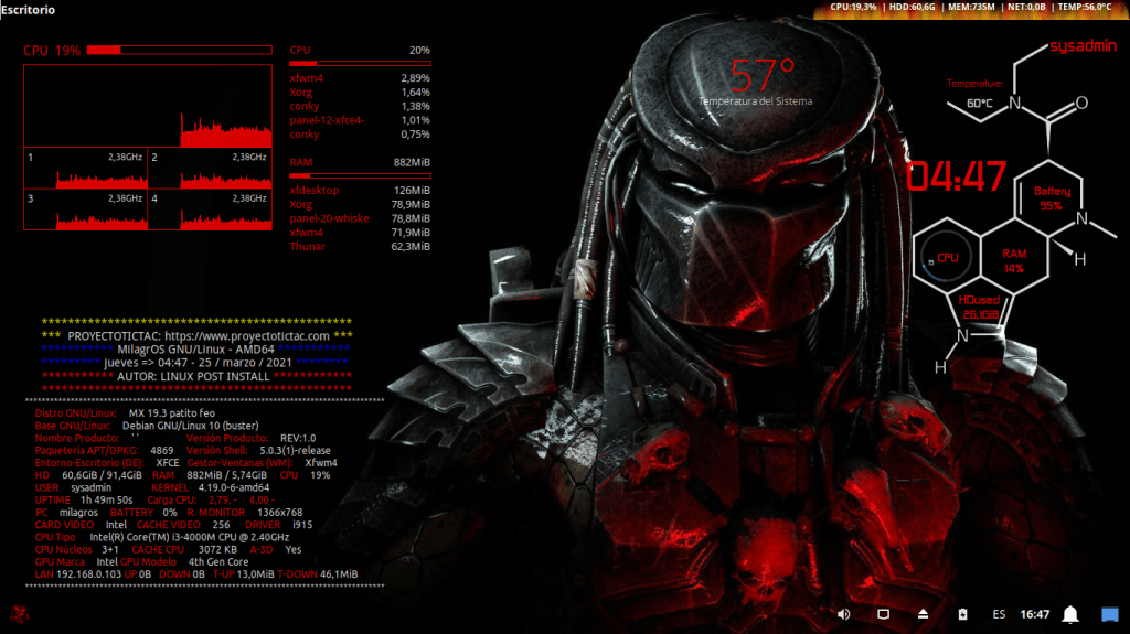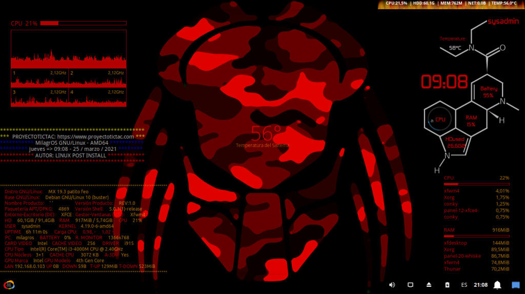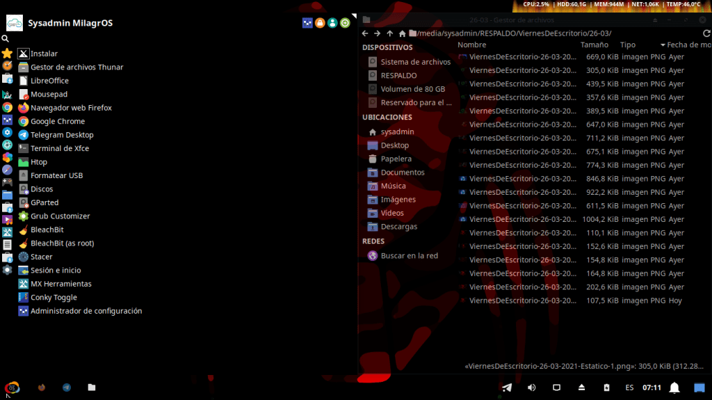 Hoy, 27/03/2021, te invitamos a disfrutar de algunas de las más hermosas y espectaculares capturas de #FondosDePantalla ( #Wallpapers ) de #Escritorios de Sistemas Operativos #GNU #Linux, las primeras creadas partiendo de diferentes personalizaciones de MilagrOS GNU/Linux Versión 2.2 – Edición Omega y luego unas provenientes principalmente de los Grupos de #Telegram llamados #ViernesDeEscritorio, #ProyectoTicTac y muchos otros usuarios y grupos de #Twitter y #Facebook, recopilados de la celebración del «Viernes de Escritorio» del 26/02.