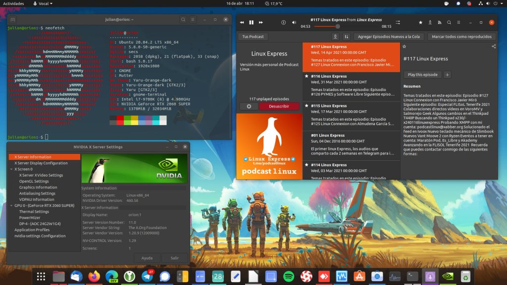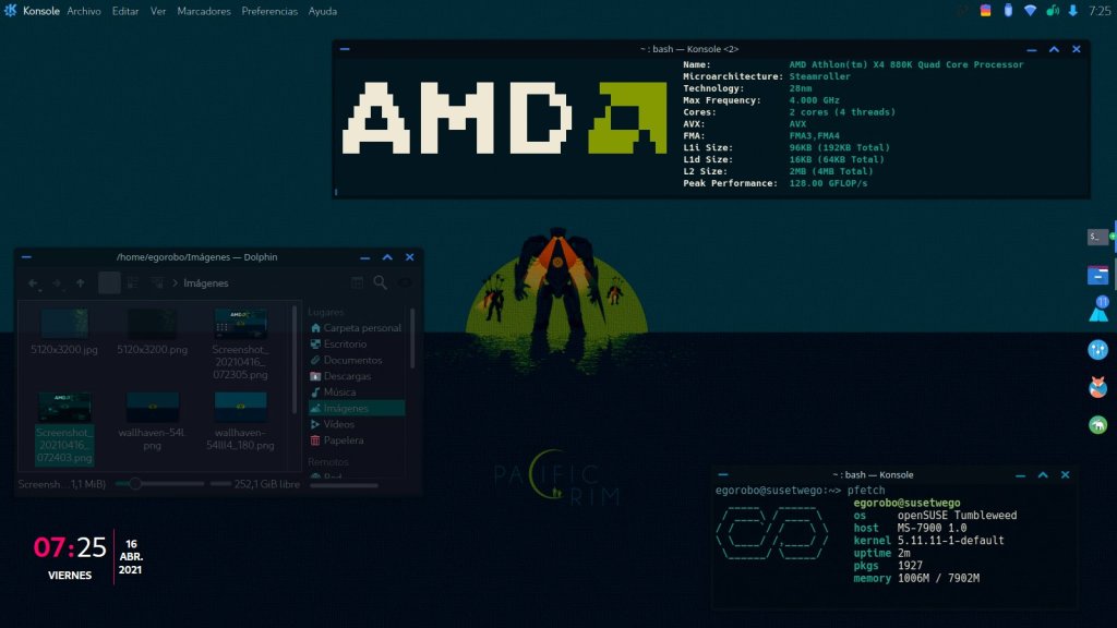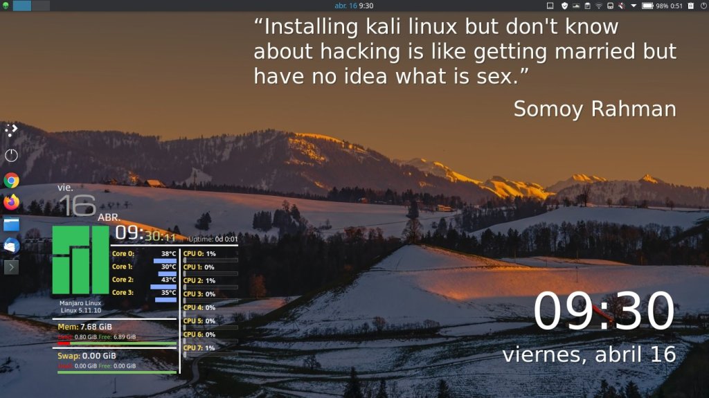 Hoy, 17/04/2021, te invitamos a disfrutar de algunas de las más hermosas y espectaculares capturas de #FondosDePantalla ( #Wallpapers ) de #Escritorios de Sistemas Operativos #GNU #Linux, las primeras creadas partiendo de diferentes personalizaciones de MilagrOS GNU/Linux y luego unas provenientes principalmente de los Grupos de #Telegram llamados #ViernesDeEscritorio, #ProyectoTicTac y muchos otros usuarios y grupos de #Twitter y #Facebook, recopilados de la celebración del «Viernes de Escritorio» del 16/04.