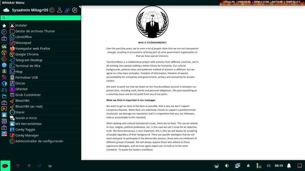 - MilagrOS (MinerOS) GNU/Linux