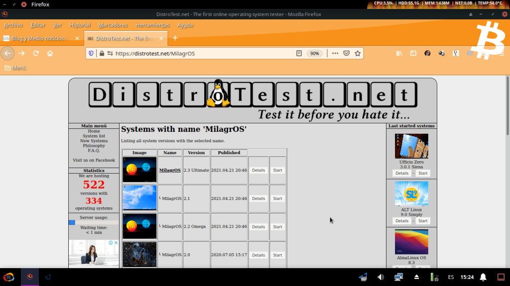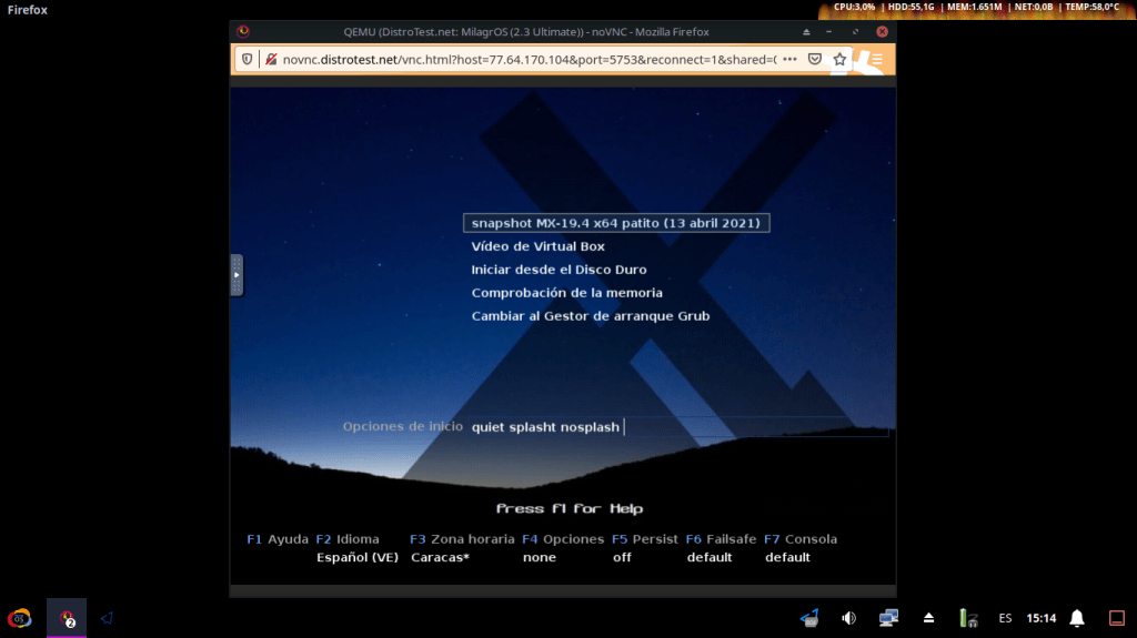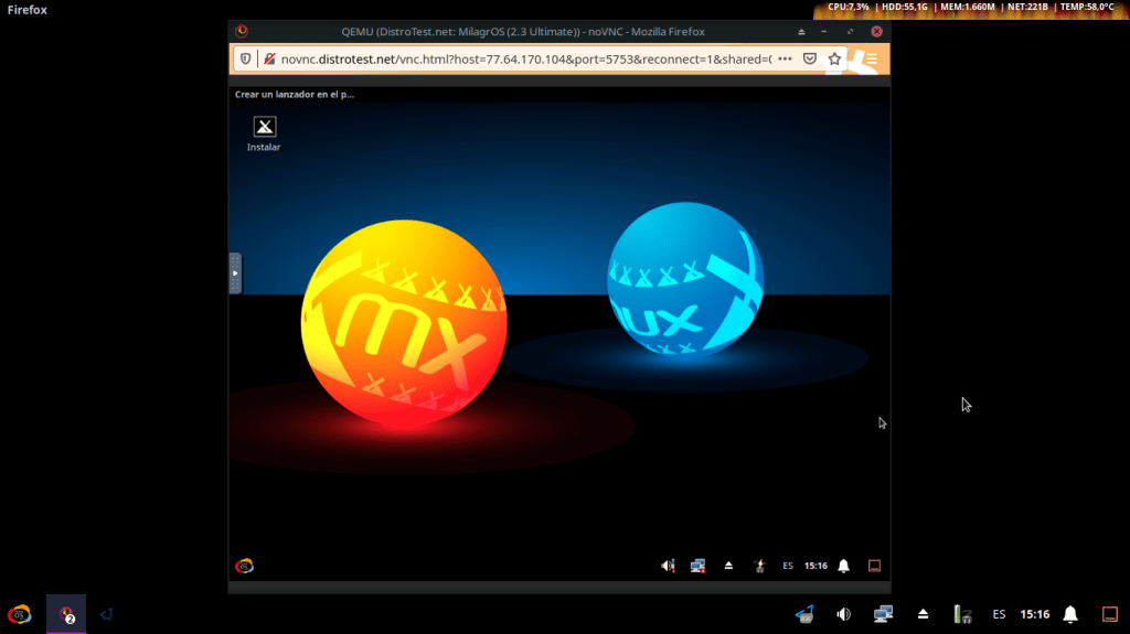 Probar MilagrOS GNU/Linux 2.X en línea sobre DistroTest