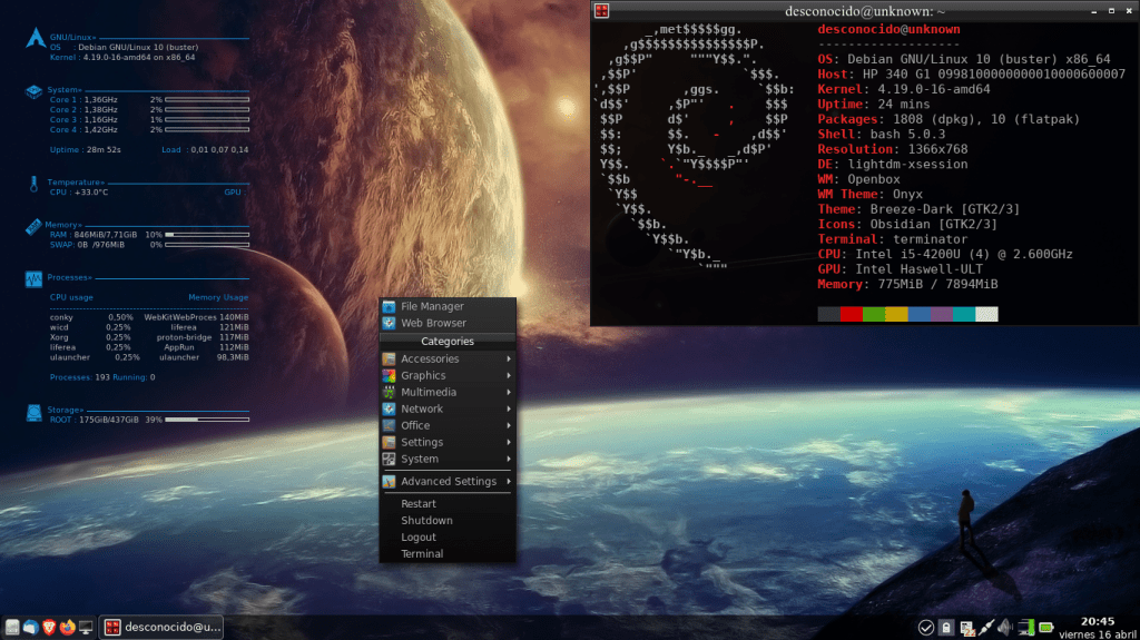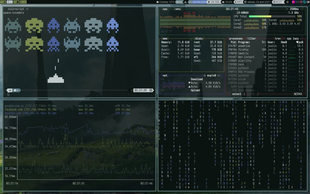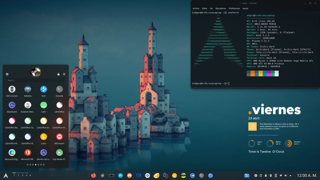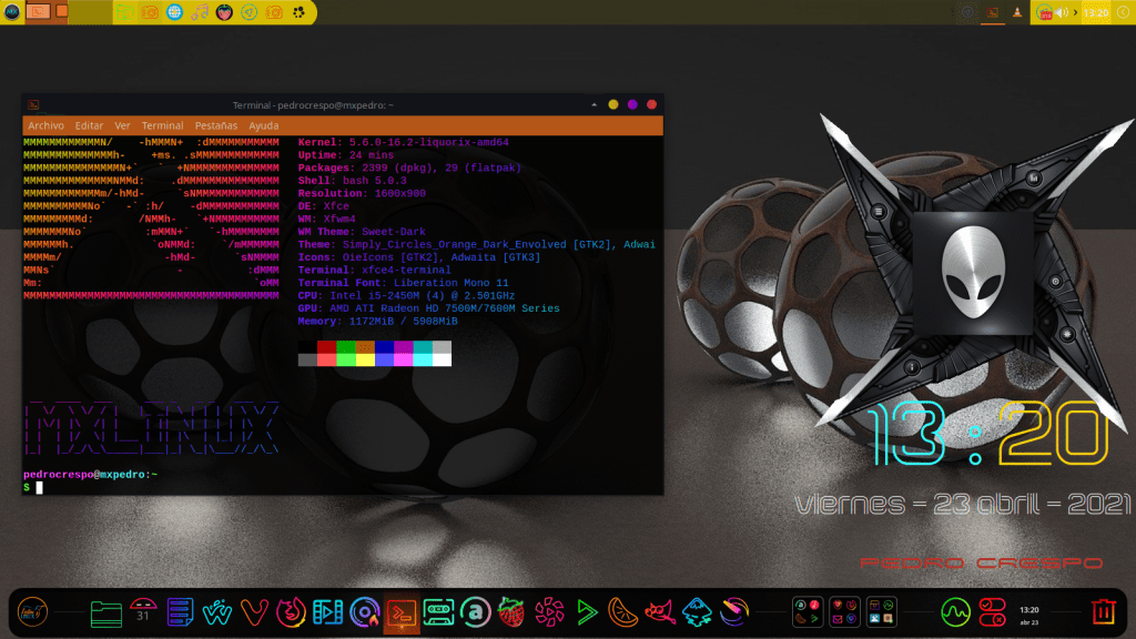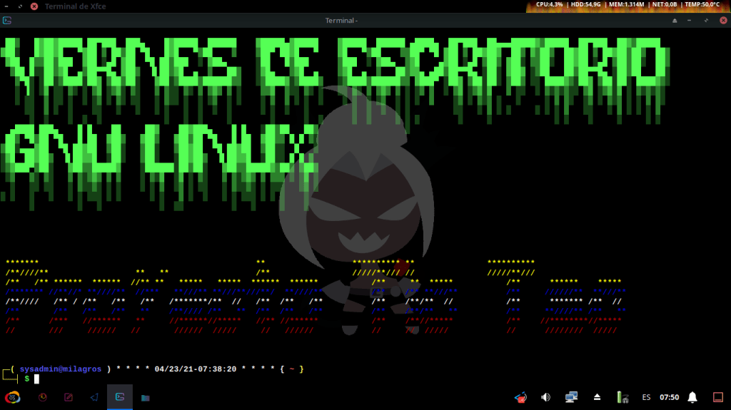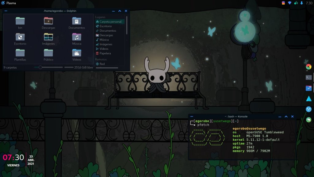 Hoy, 24/04/2021, te invitamos a disfrutar de algunas de las más hermosas y espectaculares capturas de #FondosDePantalla ( #Wallpapers ) de #Escritorios de Sistemas Operativos #GNU #Linux, las primeras creadas partiendo de diferentes personalizaciones de MilagrOS GNU/Linux y luego unas provenientes principalmente de los Grupos de #Telegram llamados #ViernesDeEscritorio, #ProyectoTicTac y muchos otros usuarios y grupos de #Twitter y #Facebook, recopilados de la celebración del «Viernes de Escritorio» del 23/04.