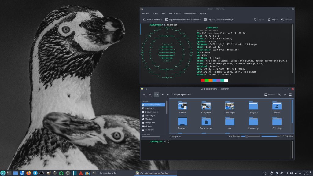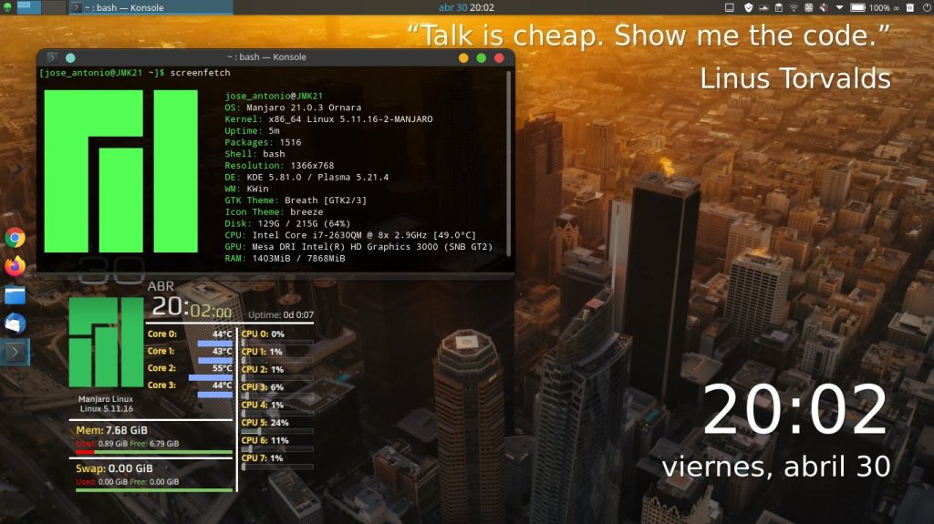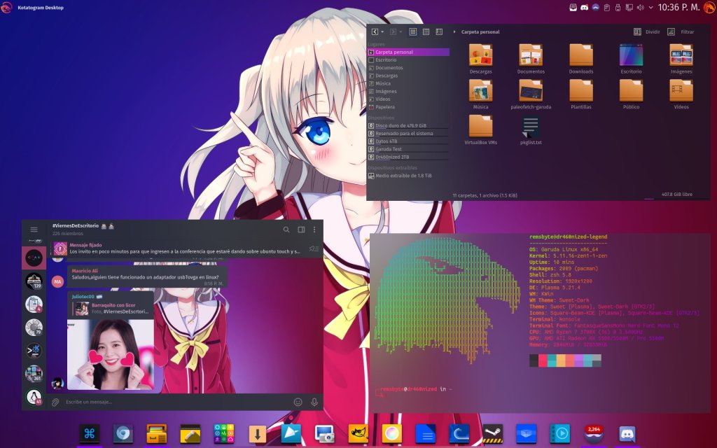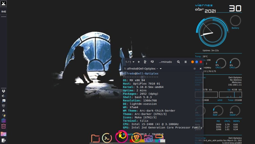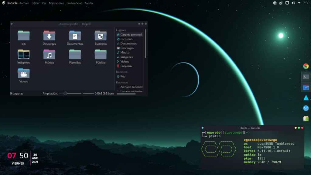 Hoy, 01/05/2021, te invitamos a disfrutar de algunas de las más hermosas y espectaculares capturas de #FondosDePantalla ( #Wallpapers ) de #Escritorios de Sistemas Operativos #GNU #Linux, las primeras creadas partiendo de diferentes personalizaciones de MilagrOS GNU/Linux y luego unas provenientes principalmente de los Grupos de #Telegram llamados #ViernesDeEscritorio, #ProyectoTicTac y muchos otros usuarios y grupos de #Twitter y #Facebook, recopilados de la celebración del «Viernes de Escritorio» del 30/04.
