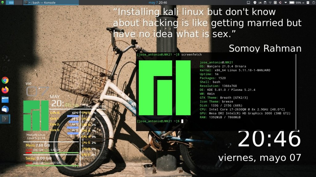 Hoy, 08/05/2021, te invitamos a disfrutar de algunas de las más hermosas y espectaculares capturas de #FondosDePantalla ( #Wallpapers ) de #Escritorios de Sistemas Operativos #GNU #Linux, las primeras creadas partiendo de diferentes personalizaciones de MilagrOS GNU/Linux y luego unas provenientes principalmente de los Grupos de #Telegram llamados #ViernesDeEscritorio, #ProyectoTicTac y muchos otros usuarios y grupos de #Twitter y #Facebook, recopilados de la celebración del «Viernes de Escritorio» del 07/05.