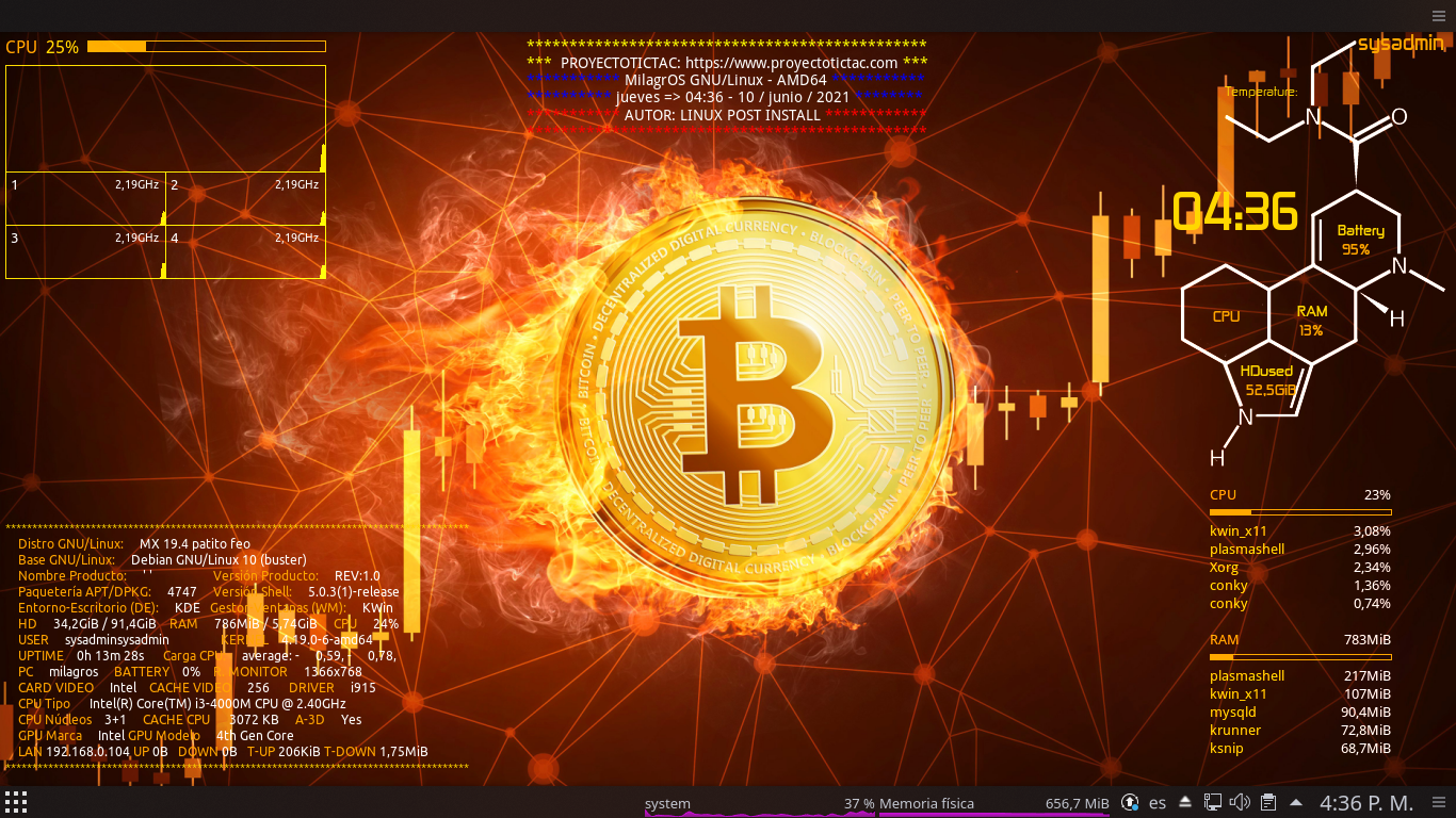 Hoy, 11/06/2021, te invito a disfrutar de algunas interesantes y llamativas capturas de pantalla del Escritorio de mi Sistema Operativo GNU Linux, que es un Respin Comunitario de MX Linux llamado MilagrOS GNU/Linux.