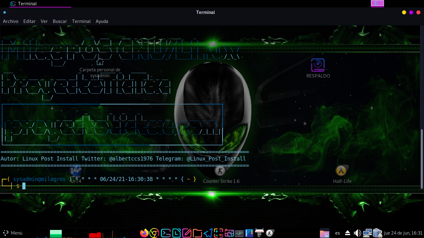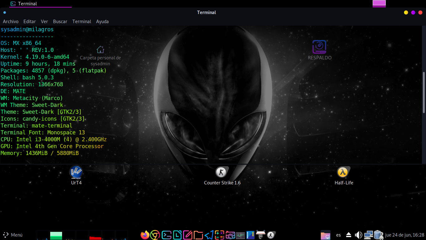 Hoy, 25/06/2021, te invito a disfrutar de algunas interesantes y llamativas capturas de pantalla del Escritorio de mi Sistema Operativo GNU Linux, que es un Respin Comunitario de MX Linux llamado MilagrOS GNU/Linux.
