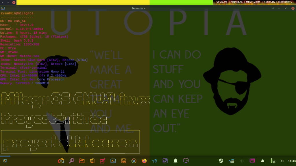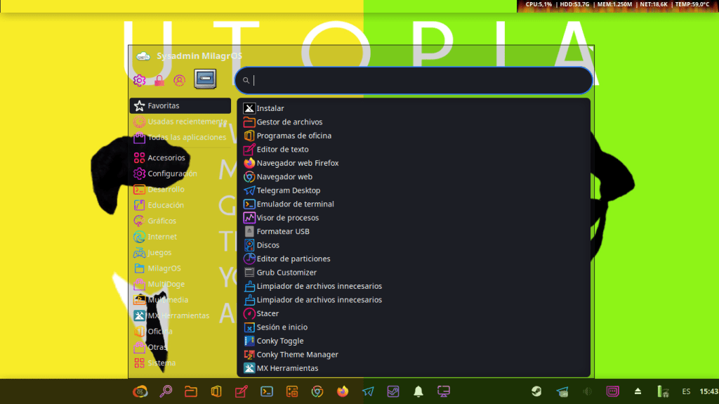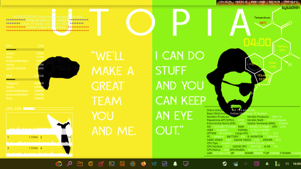 Hoy, 30/07/2021, te invito a disfrutar de algunas interesantes y llamativas capturas de pantalla del Escritorio de mi Sistema Operativo GNU Linux, que es un Respin Comunitario de MX Linux llamado MilagrOS GNU/Linux.