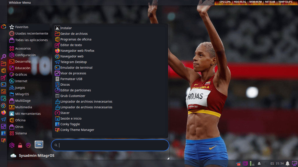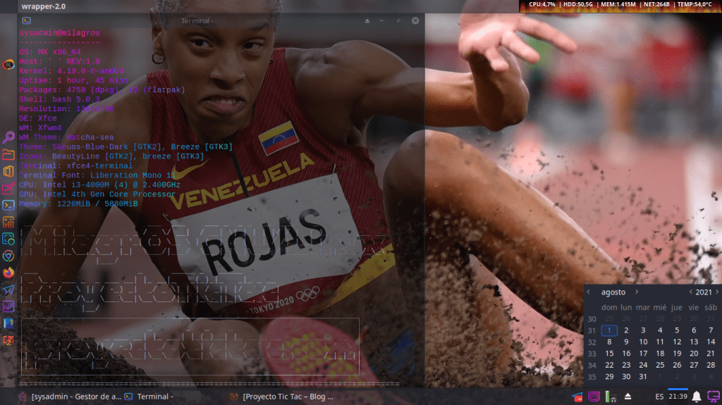 Hoy, 06/08/2021, te invito a disfrutar de algunas interesantes y llamativas capturas de pantalla del Escritorio de mi Sistema Operativo GNU Linux, que es un Respin Comunitario de MX Linux llamado MilagrOS GNU/Linux.