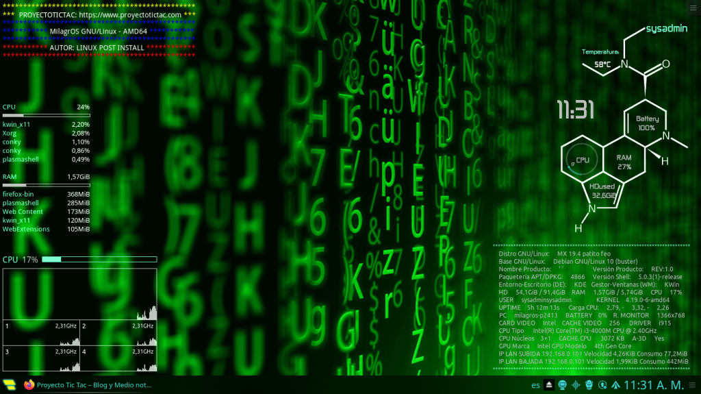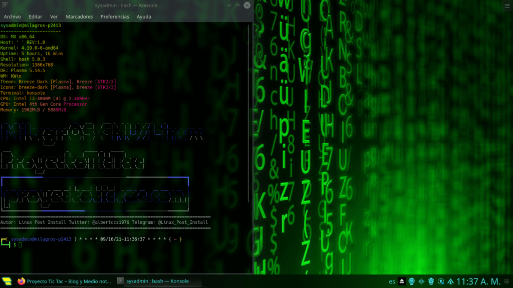 Hoy, 17/09/2021, te invito a disfrutar de algunas interesantes y llamativas capturas de pantalla del Escritorio de mi Sistema Operativo GNU Linux, que es un Respin Comunitario de MX Linux llamado MilagrOS GNU/Linux.