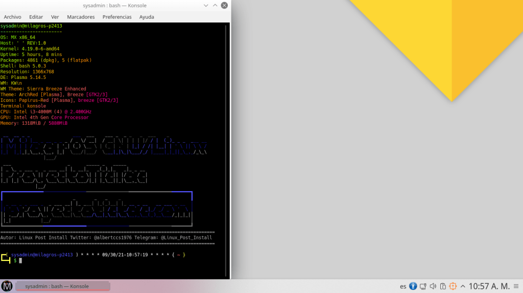 Hoy, 01/10/2021, te invito a disfrutar de algunas interesantes y llamativas capturas de pantalla del Escritorio de mi Sistema Operativo GNU Linux, que es un Respin Comunitario de MX Linux llamado MilagrOS GNU/Linux.