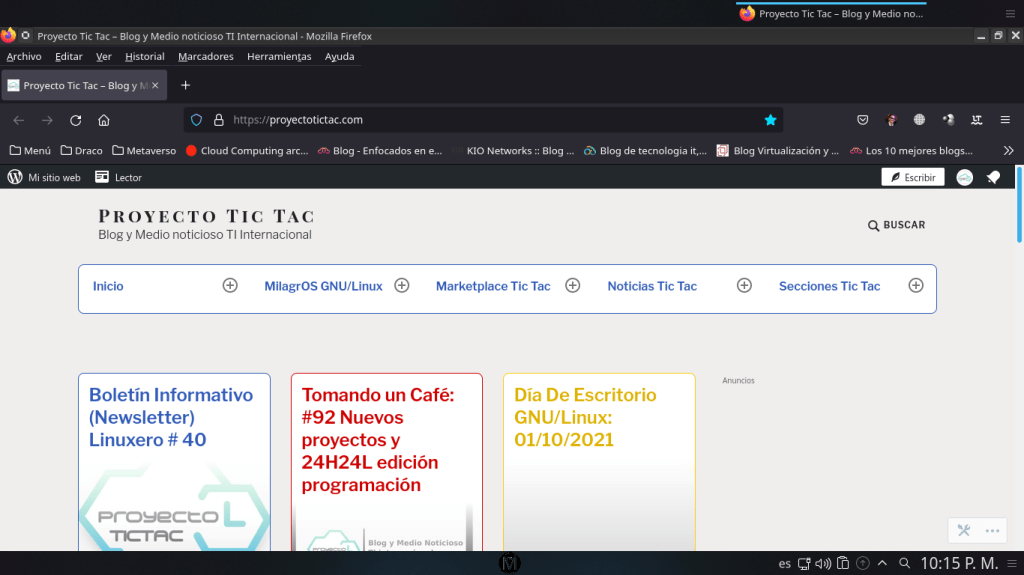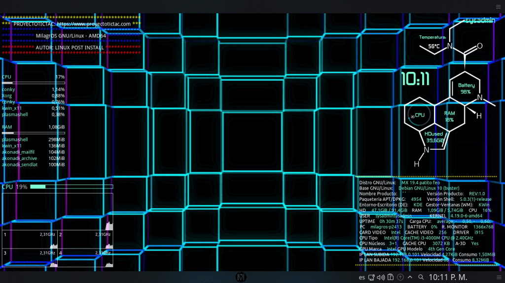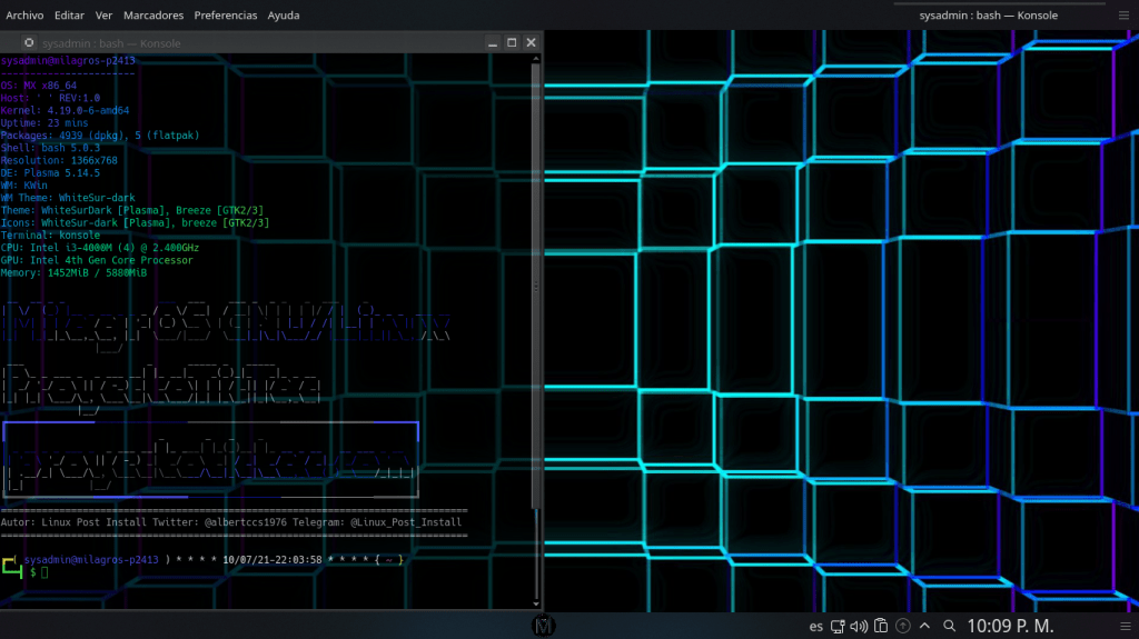 Hoy, 08/10/2021, te invito a disfrutar de algunas interesantes y llamativas capturas de pantalla del Escritorio de mi Sistema Operativo GNU Linux, que es un Respin Comunitario de MX Linux llamado MilagrOS GNU/Linux.