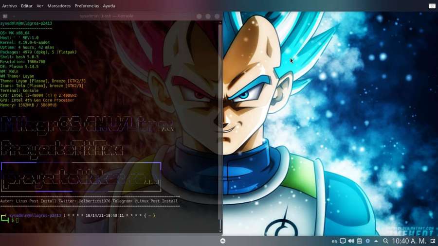 Hoy, 15/10/2021, te invito a disfrutar de algunas interesantes y llamativas capturas de pantalla del Escritorio de mi Sistema Operativo GNU Linux, que es un Respin Comunitario de MX Linux llamado MilagrOS GNU/Linux.