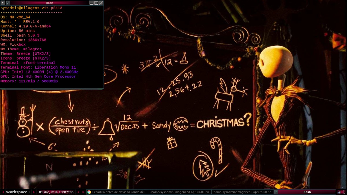 Hoy, 03/12/2021, te invito a disfrutar de algunas interesantes y llamativas capturas de pantalla del Escritorio de mi Sistema Operativo GNU Linux, que es un Respin Comunitario de MX Linux llamado MilagrOS GNU/Linux.