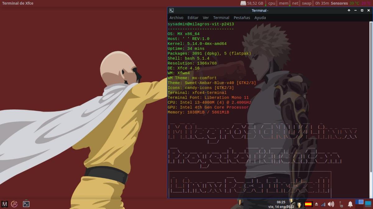 Hoy, 14/01/2022, te invito a disfrutar de algunas interesantes y llamativas capturas de pantalla del Escritorio de mi Sistema Operativo GNU Linux, que es un Respin Comunitario de MX Linux llamado MilagrOS GNU/Linux.