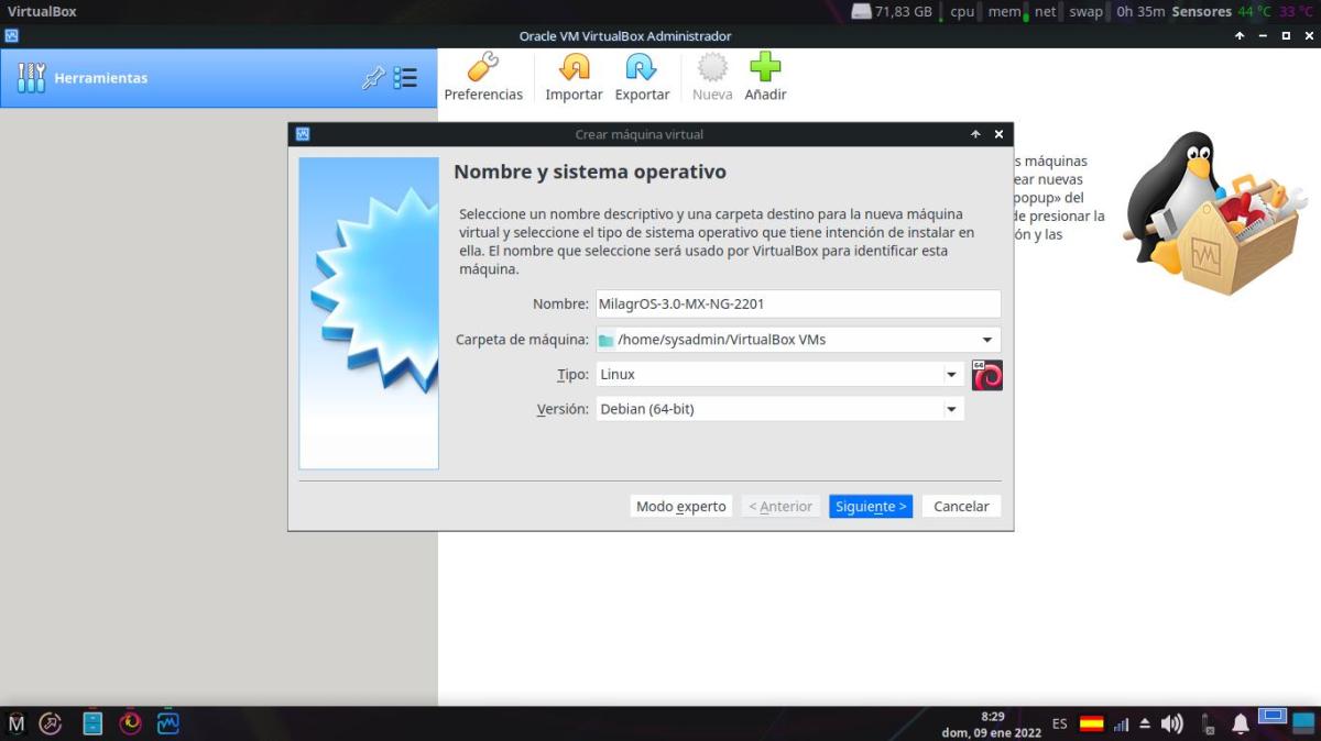 Tutorial – Primera parte: Crear Máquina Virtual para MilagrOS GNU/Linux 3.0 – MX-NG-22.01
