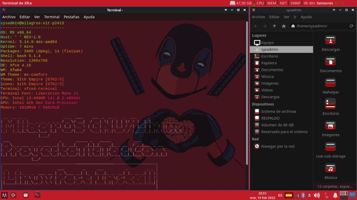 Además, a partir de este año las capturas de pantalla serán con la nueva versión llamada MilagrOS MX-NG-AHS 22.01. La cual está basada en MX-Linux 21 (Debian 11) con los repositorios AHS. Y vendrá con FluxBox, para equipos modernos de pocos recursos (- 1.0 GB RAM / – i3 CPU) y con XFCE para equipos modernos de muchos recursos (+ 1.0 GB RAM / + i3 CPU) de Hardware. Y solo ocupa – 3.0 GB ISO / – 9.0 GB DD).