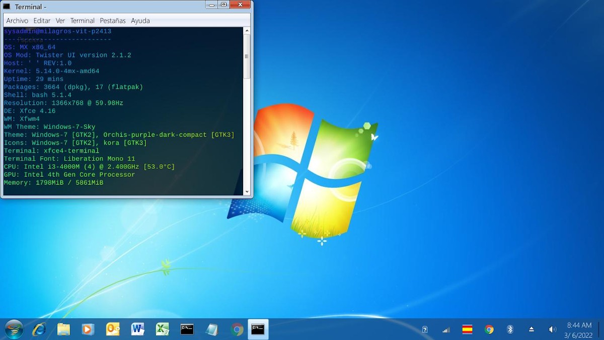 Además, a partir de este año las capturas de pantalla serán con la nueva versión llamada MilagrOS MX-NG-AHS 22.01. La cual está basada en MX-Linux 21 (Debian 11) con los repositorios AHS. Y vendrá con FluxBox, para equipos modernos de pocos recursos (- 1.0 GB RAM / – i3 CPU) y con XFCE para equipos modernos de muchos recursos (+ 1.0 GB RAM / + i3 CPU) de Hardware. Y solo ocupa – 3.0 GB ISO / – 9.0 GB DD).