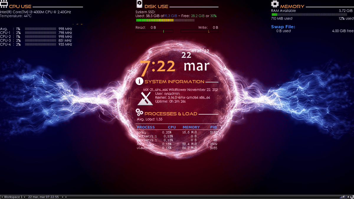 Además, a partir de este año las capturas de pantalla serán con la nueva versión llamada MilagrOS MX-NG-AHS 22.01. La cual está basada en MX-Linux 21 (Debian 11) con los repositorios AHS. Y vendrá con FluxBox, para equipos modernos de pocos recursos (- 1.0 GB RAM / – i3 CPU) y con XFCE para equipos modernos de muchos recursos (+ 1.0 GB RAM / + i3 CPU) de Hardware. Y solo ocupa – 3.0 GB ISO / – 9.0 GB DD).