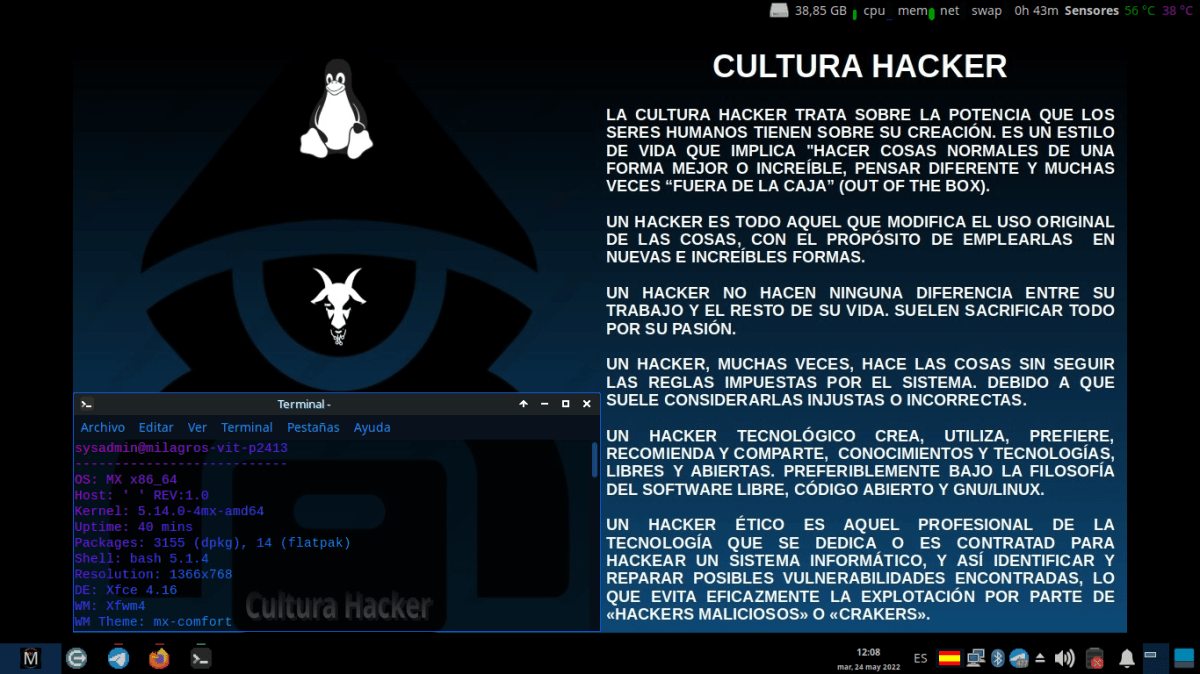 Además, a partir de este año las capturas de pantalla serán con la nueva versión llamada MilagrOS MX-NG-AHS 22.01. La cual está basada en MX-Linux 21 (Debian 11) con los repositorios AHS. Y vendrá con FluxBox, para equipos modernos de pocos recursos (- 1.0 GB RAM / – i3 CPU) y con XFCE para equipos modernos de muchos recursos (+ 1.0 GB RAM / + i3 CPU) de Hardware. Y solo ocupa – 3.0 GB ISO / – 9.0 GB DD).