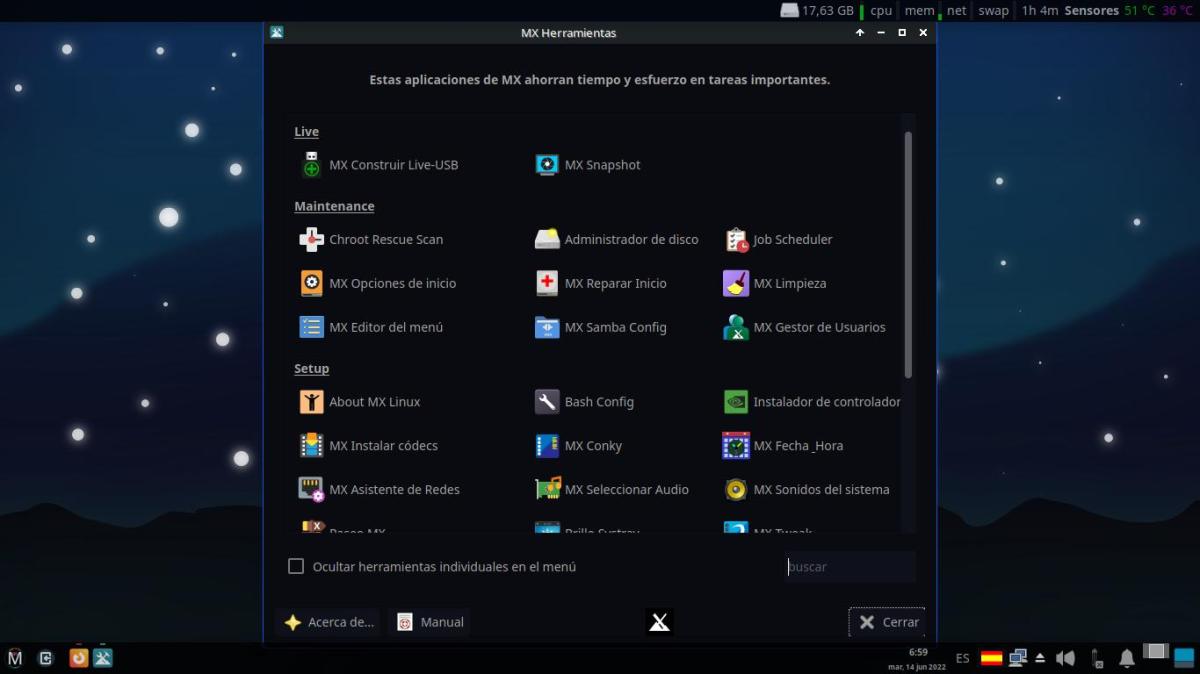 Además, a partir de este año las capturas de pantalla serán con la nueva versión llamada MilagrOS MX-NG-AHS 22.01. La cual está basada en MX-Linux 21 (Debian 11) con los repositorios AHS. Y vendrá con FluxBox, para equipos modernos de pocos recursos (- 1.0 GB RAM / – i3 CPU) y con XFCE para equipos modernos de muchos recursos (+ 1.0 GB RAM / + i3 CPU) de Hardware. Y solo ocupa – 3.0 GB ISO / – 9.0 GB DD).