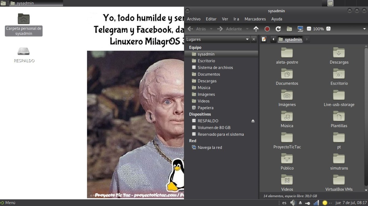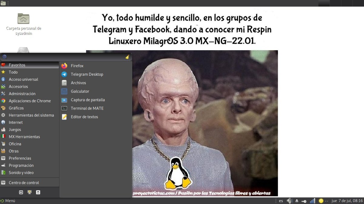Hoy, te invitamos a disfrutar de algunas interesantes y llamativas capturas de pantalla del Escritorio de nuestro Sistema Operativo GNU Linux, que es un Respin Comunitario de MX Linux llamado MilagrOS GNU/Linux.