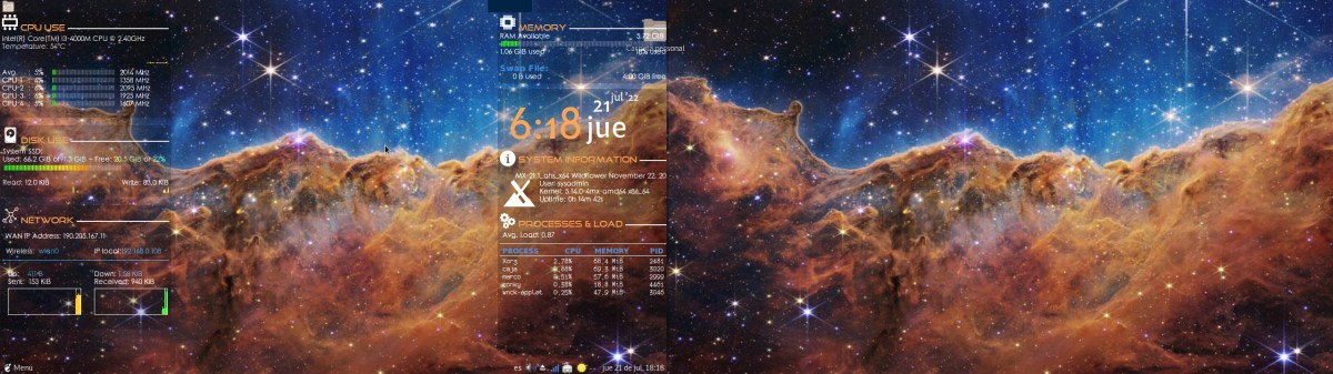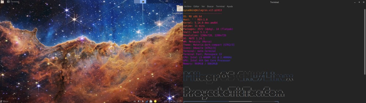 Además, a partir de este año las capturas de pantalla serán con la nueva versión llamada MilagrOS MX-NG-AHS 22.01. La cual está basada en MX-Linux 21 (Debian 11) con los repositorios AHS. Y vendrá con FluxBox, para equipos modernos de pocos recursos (- 1.0 GB RAM / – i3 CPU) y con XFCE para equipos modernos de muchos recursos (+ 1.0 GB RAM / + i3 CPU) de Hardware. Y solo ocupa – 3.0 GB ISO / – 9.0 GB DD).