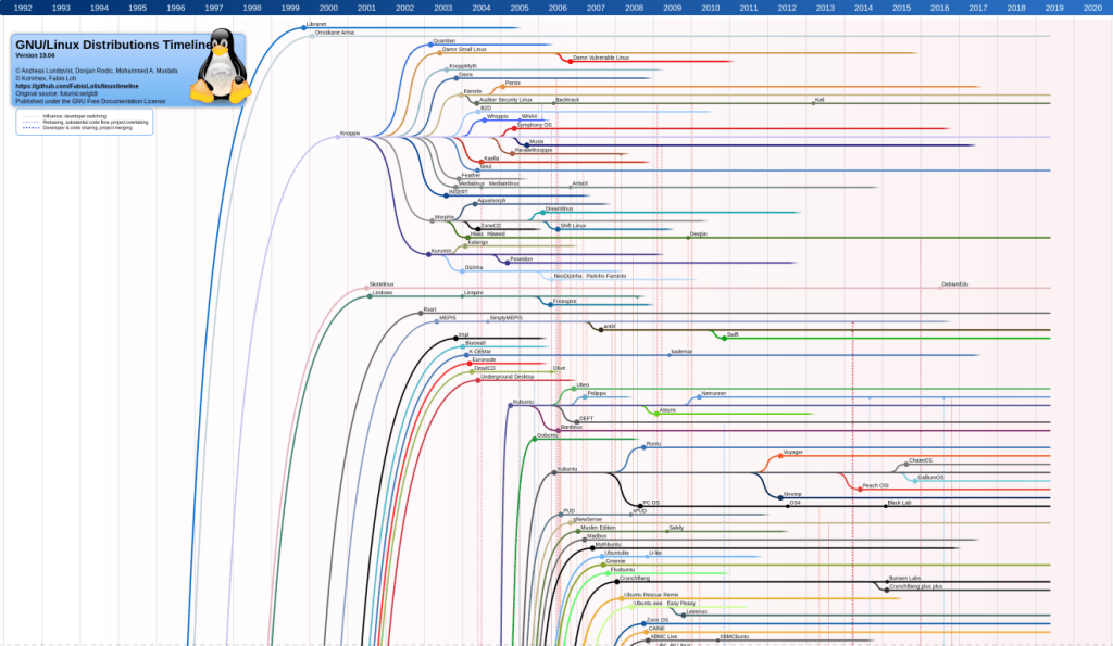 Y para obtener información sobre Distros Madres e Hijas haga clic en el siguiente enlace GNU/Linux Distributions Timeline Version 19.04.